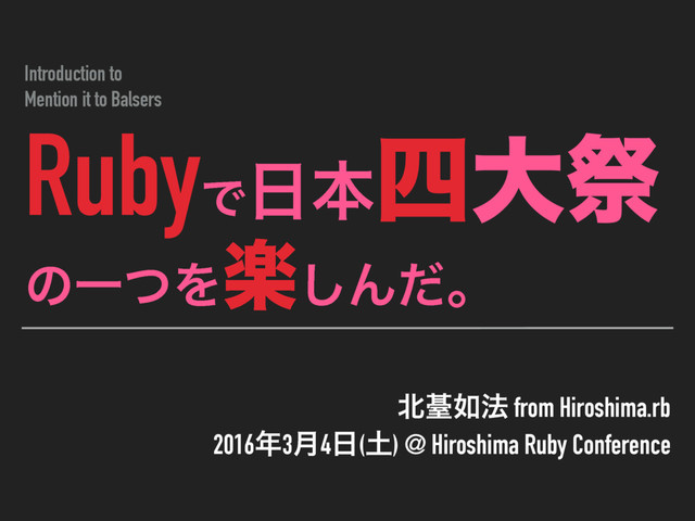 Hiroshima.rb 20163݄4() @ Hiroshima Ruby Conference