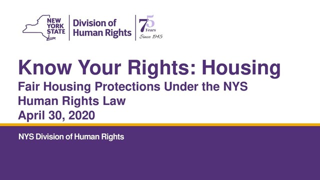 The New York State Division of Human Rights, in partnership with the New York State Department of State and New York State Homes and Community Renewal, presented a fair housing month event on Zoom.