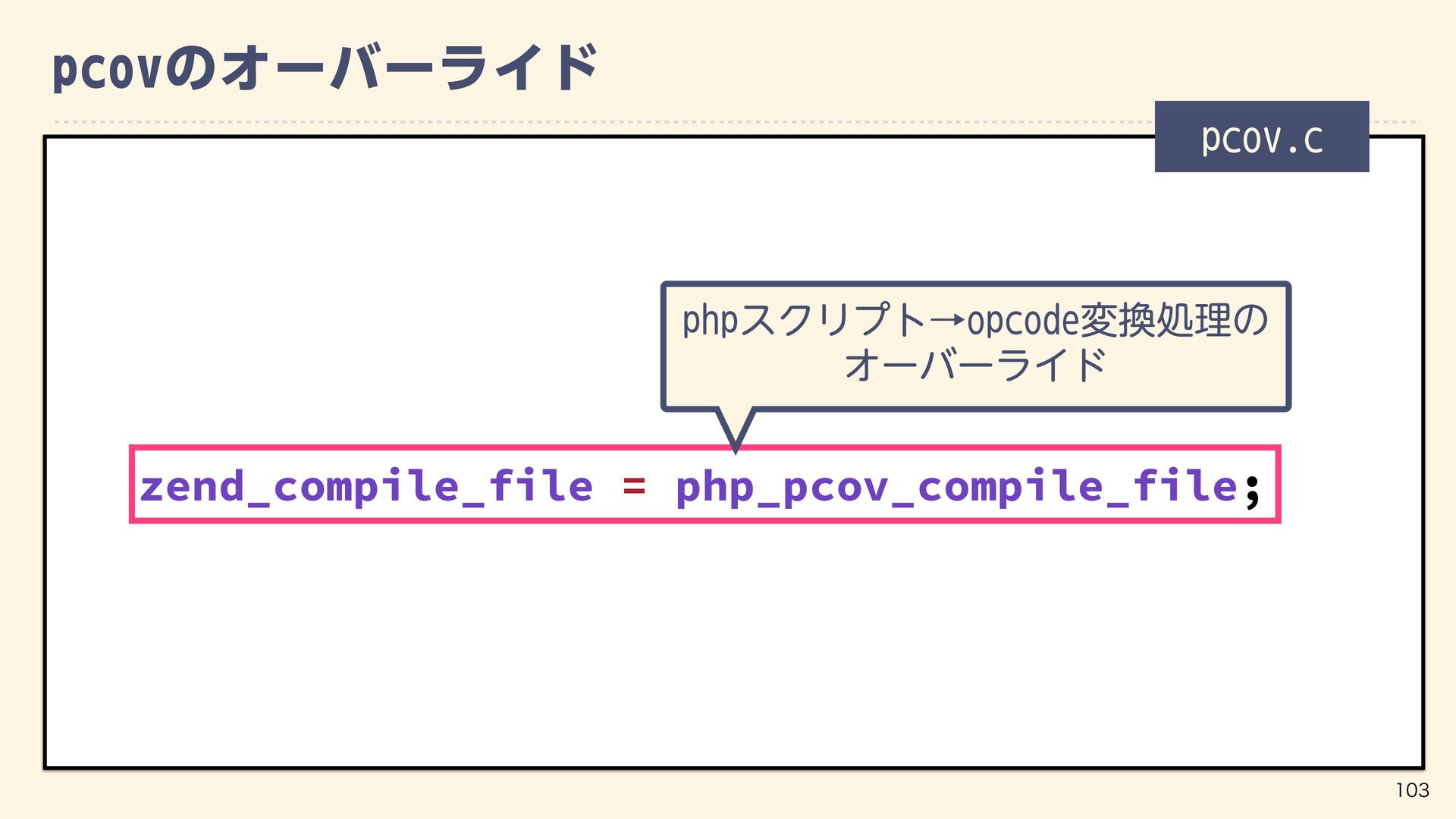 pcov.c zend_compile_file = php_pcov_compile_file; phpスクリプト→opcode変換処理の オーバーライド