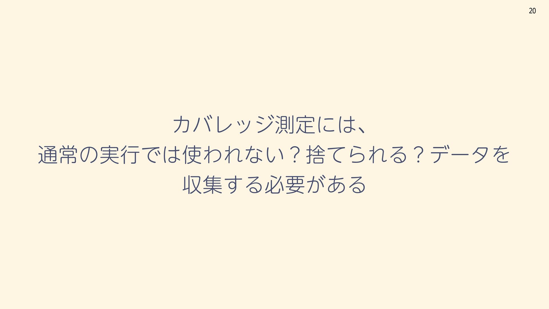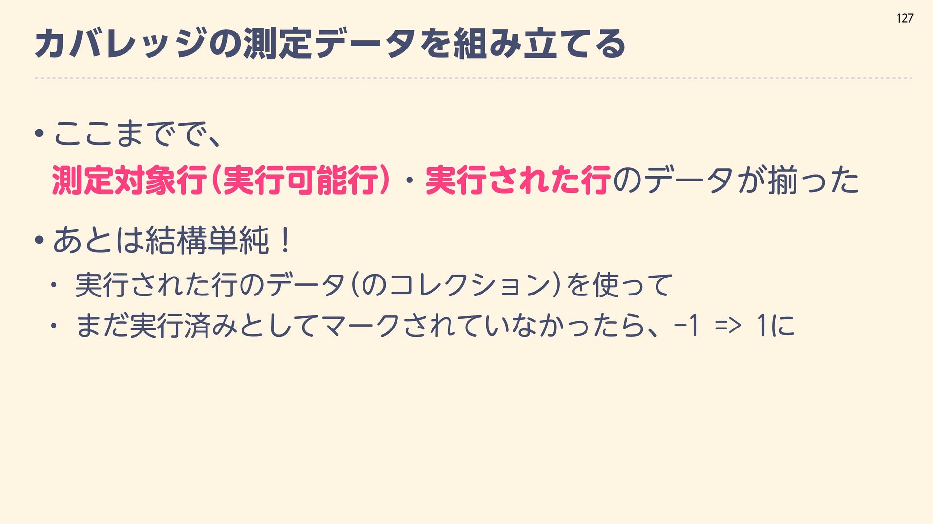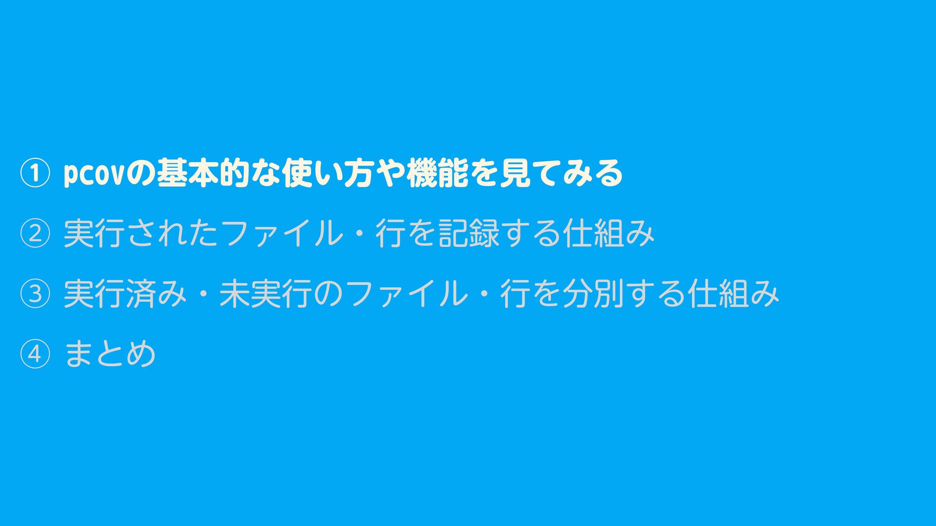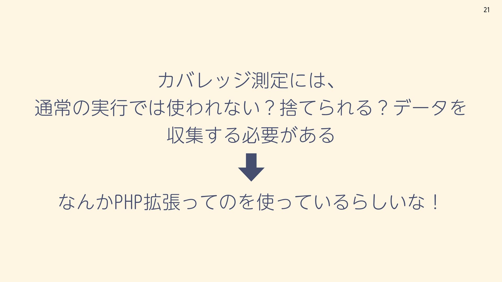 \pcov\stop(); $coverage = \pcov\collect(); var_dump($coverage); 001 002 003 004 005 006 007 008 009 010 011 012 ここで測定終了