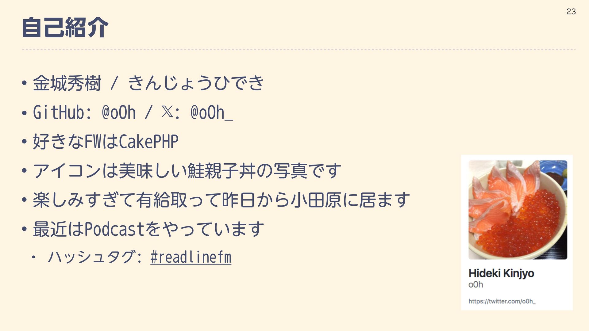 : @o0h_ • 好きなFWはCakePHP • アイコンは美味しい鮭親子丼の写真です • 楽しみすぎて有給取って昨日から小田原に居ます • 最近はPodcastをやっています • ハッシュタグ: #readlinefm