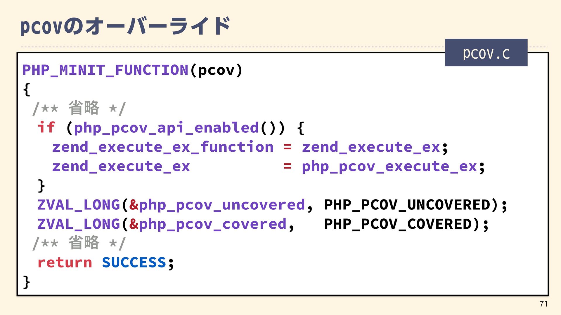 25. pcovのオーバーライド PHP_MINIT_FUNCTION(pcov) { /** লུ */ /** লུ */ }