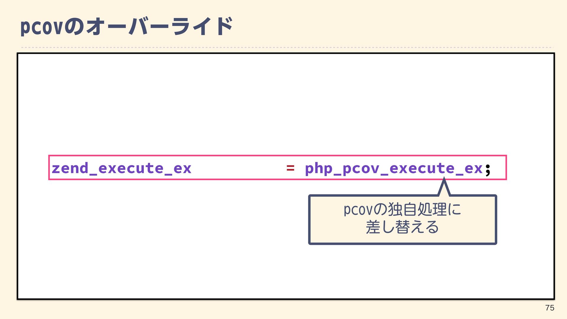 zend_execute_ex = php_pcov_execute_ex; pcovの独自処理に 差し替える pcov.c