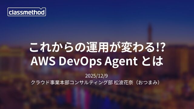 2025/12/9 クラウド事業本部コンサルティング部 松波花奈(おつまみ) これからの運⽤が変わる!? AWS DevOps Agent とは