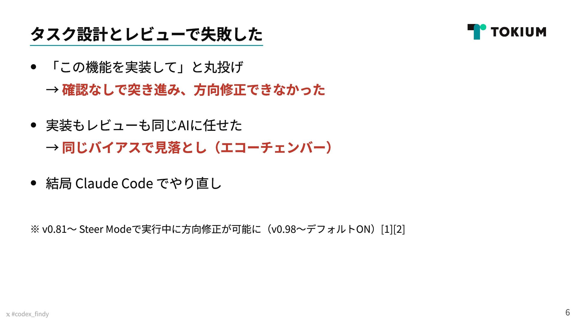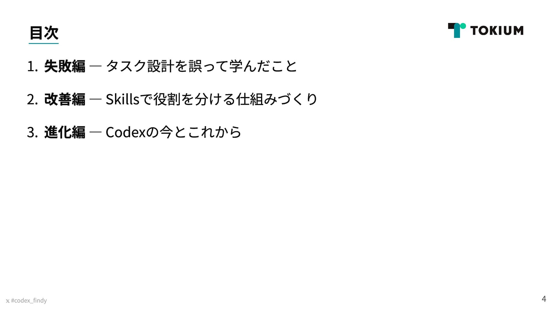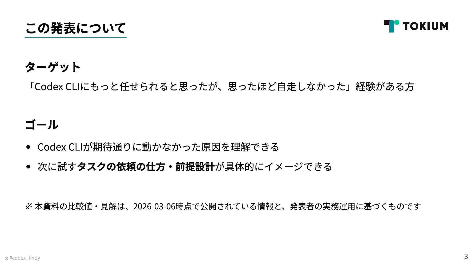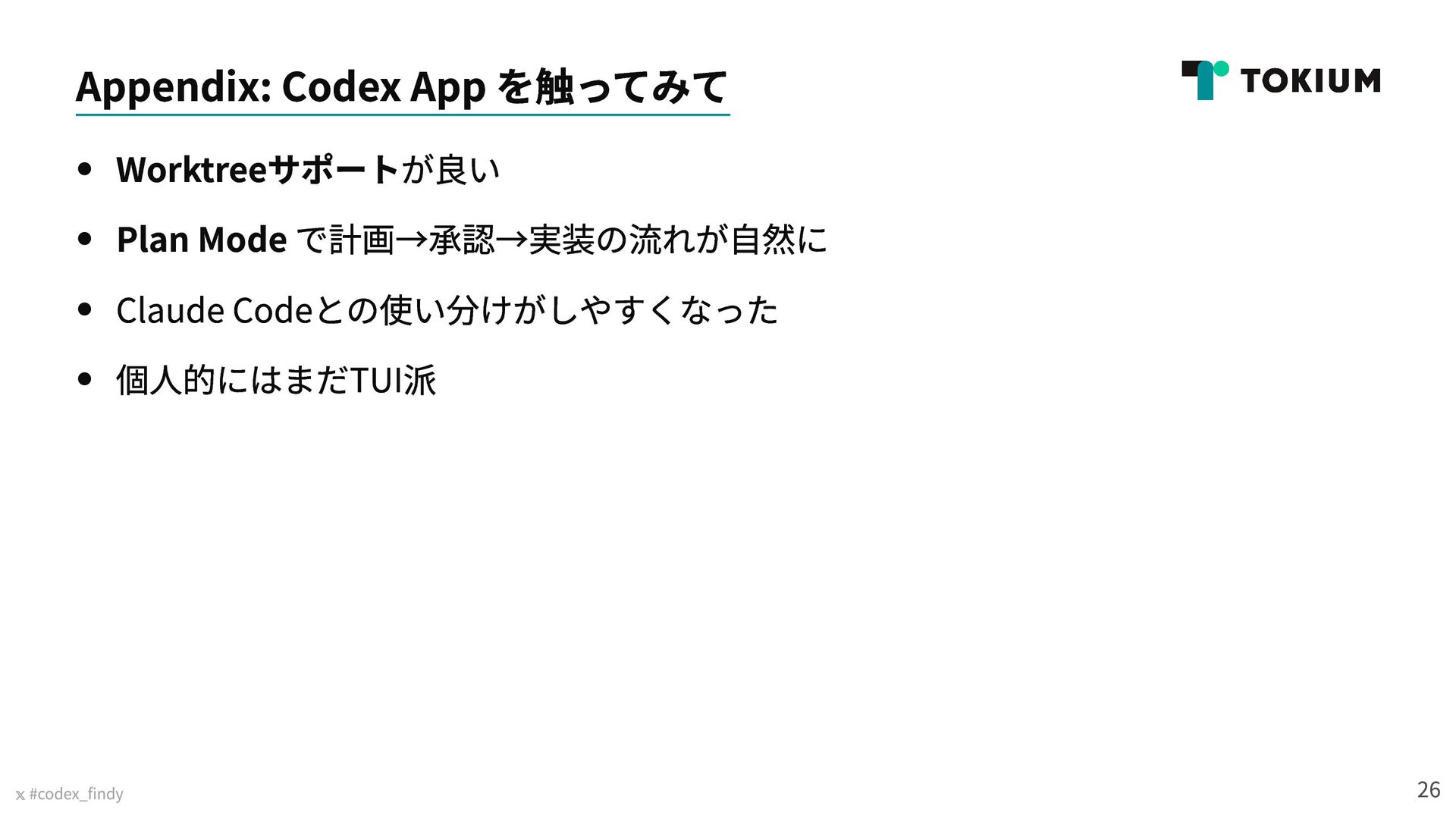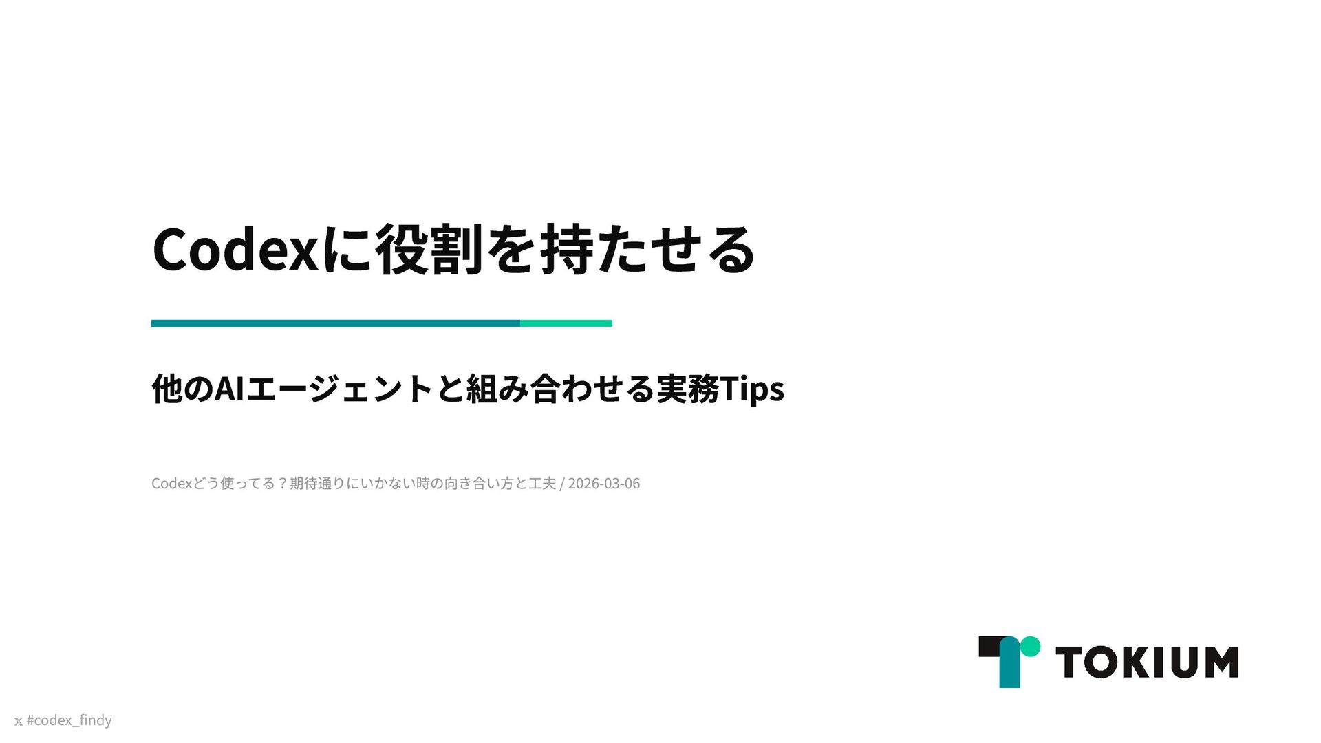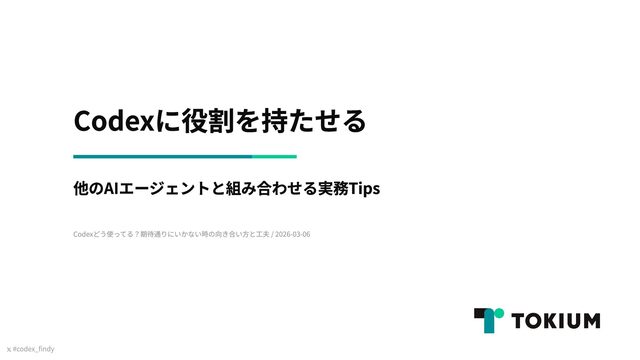 Findy Lunch Talk「Codexどう使ってる?期待通りにいかない時の向き合い方と工夫」(2026年3月6日実施)で発表した資料です https://findy.connpass.com/event/384314/
