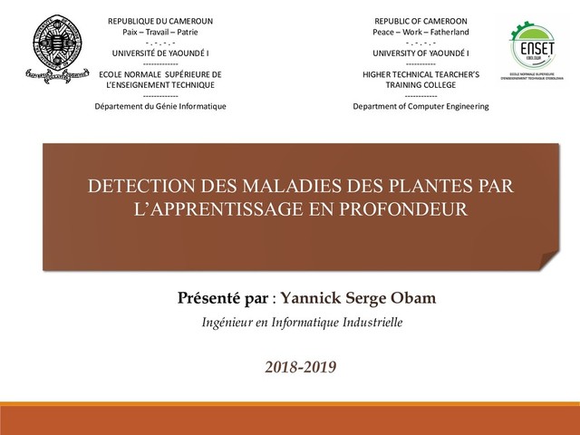 Une étude a été réalisée afin de proposer un système intelligent de détection des maladies des plantes à base des simples images de feuilles de plantes saines et malades, ceci en utilisant les méthodes d'apprentissage en profondeur et TensorFlow comme outil de developpement des modèles.