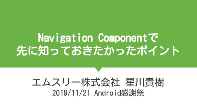 • Navigation Component の動作について解説をした • Navigation Component の中の事情を知った上で、 何ができるか/できないかについて解説した •