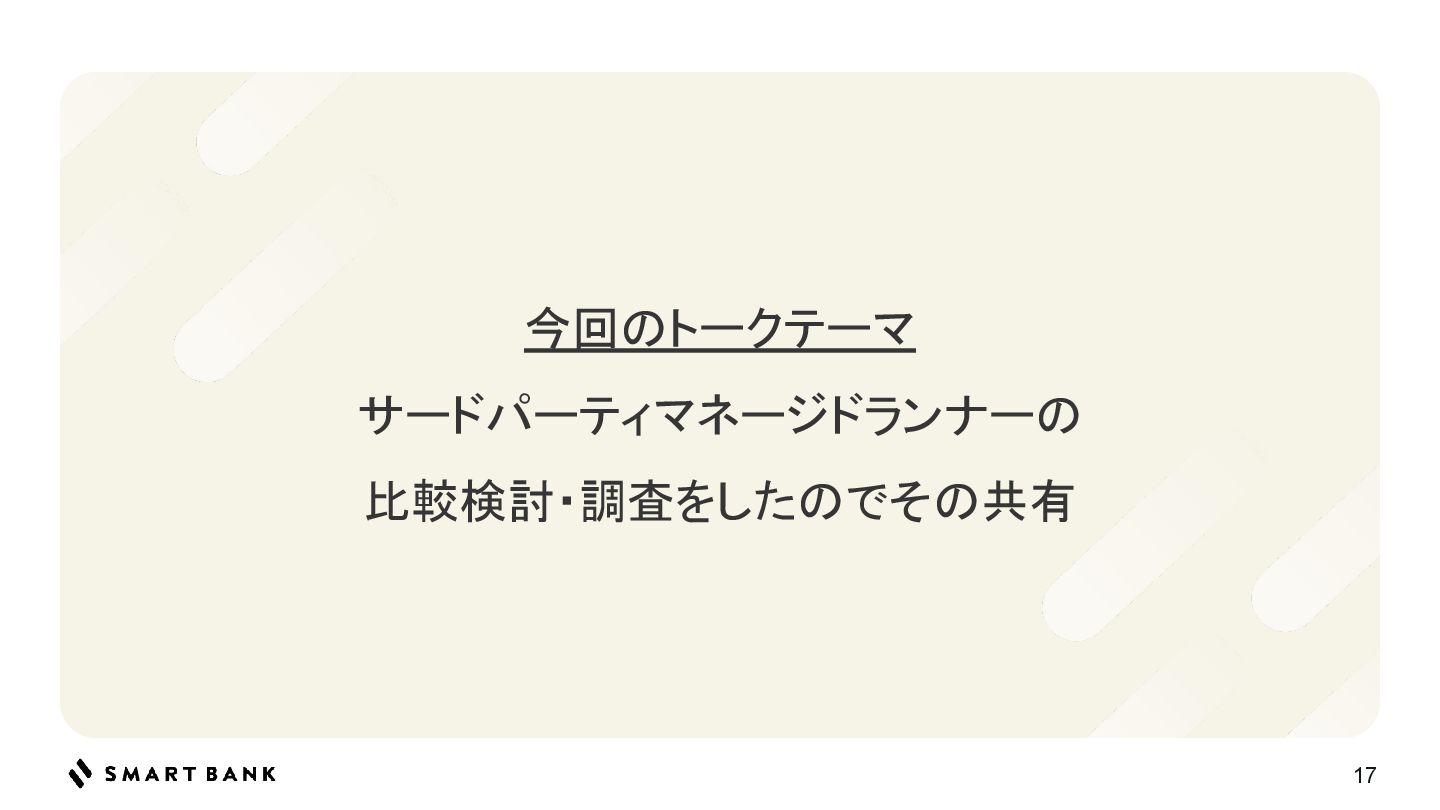 17 今回のトークテーマ サードパーティマネージドランナーの 比較検討・調査をしたのでその共有