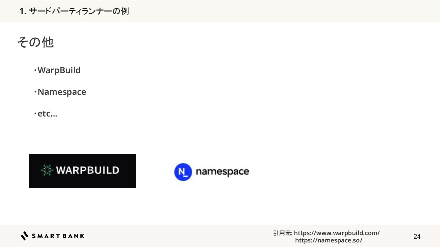 24 その他 ・WarpBuild ・Namespace ・etc… 引用元: https://www.warpbuild.com/ https://namespace.so/ 1.