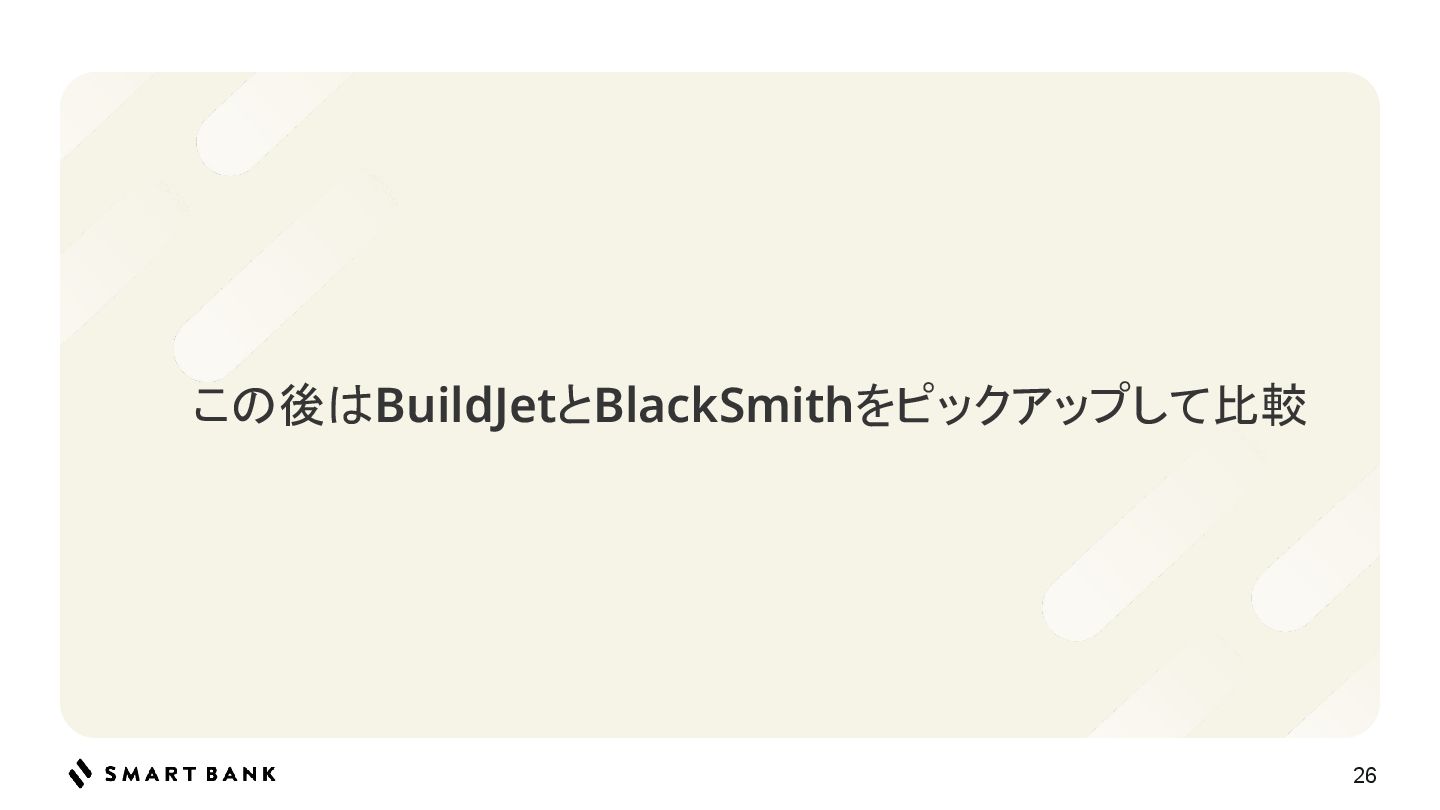 26 この後はBuildJetとBlackSmithをピックアップして比較