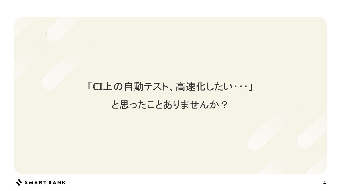 4 「CI上の自動テスト、高速化したい・・・」 と思ったことありませんか?