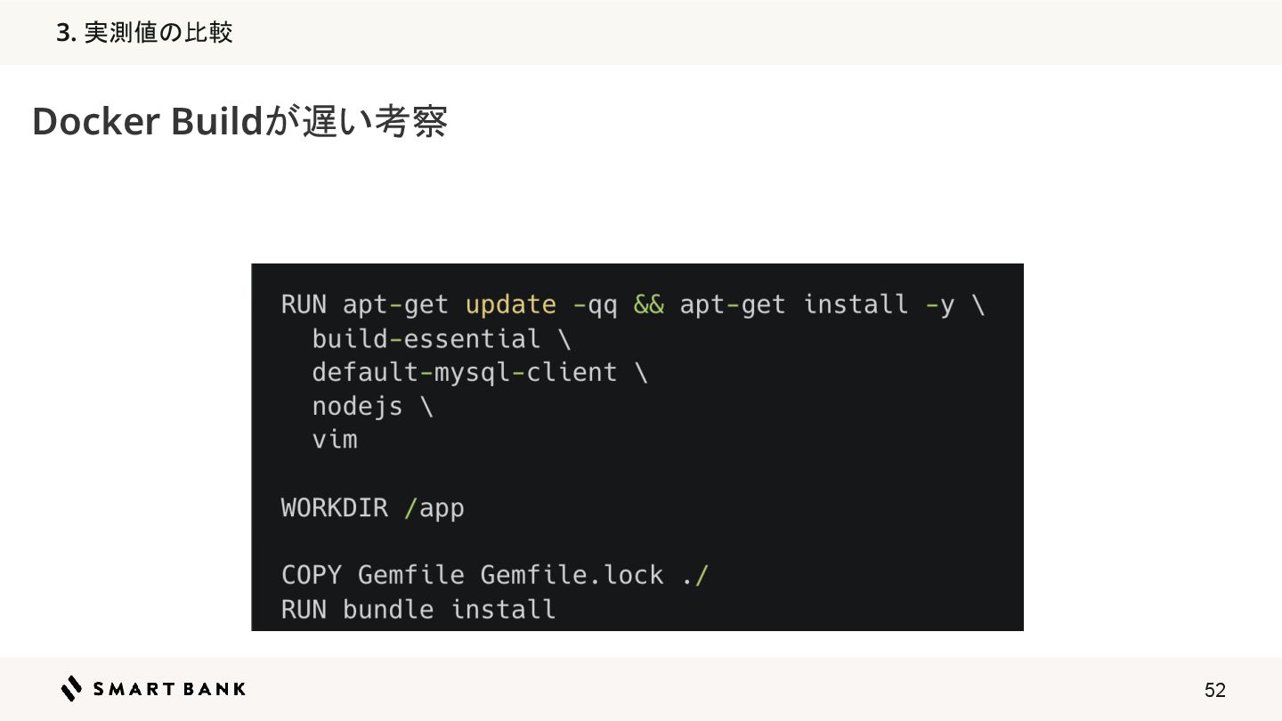 52 3. 実測値の比較 Docker Buildが遅い考察