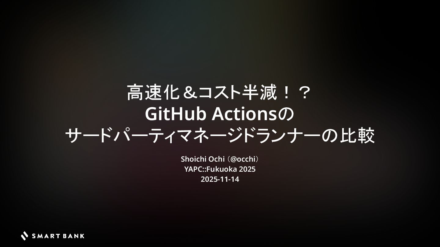 高速化&コスト半減!? GitHub Actionsの サードパーティマネージドランナーの比較 Shoichi Ochi (@occhi) YAPC::Fukuoka 2025