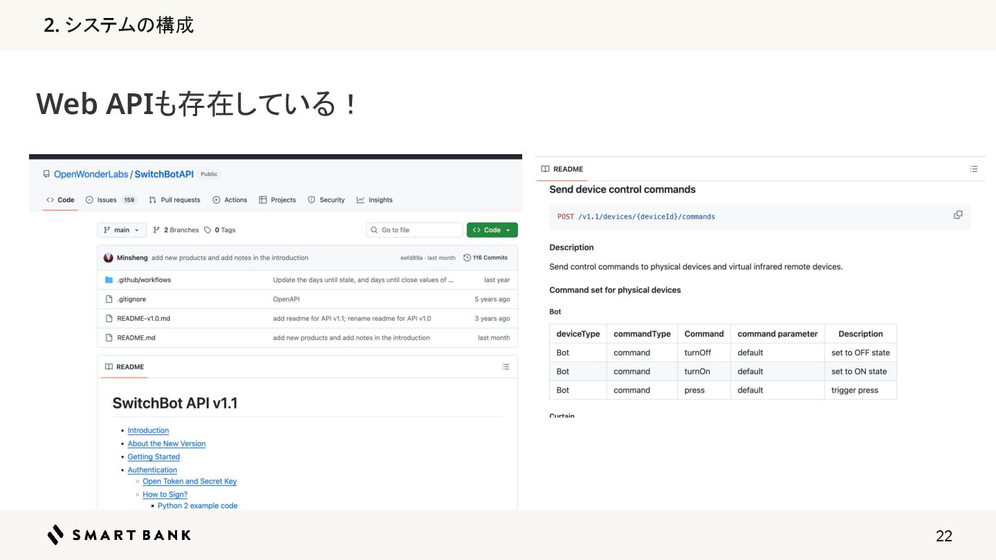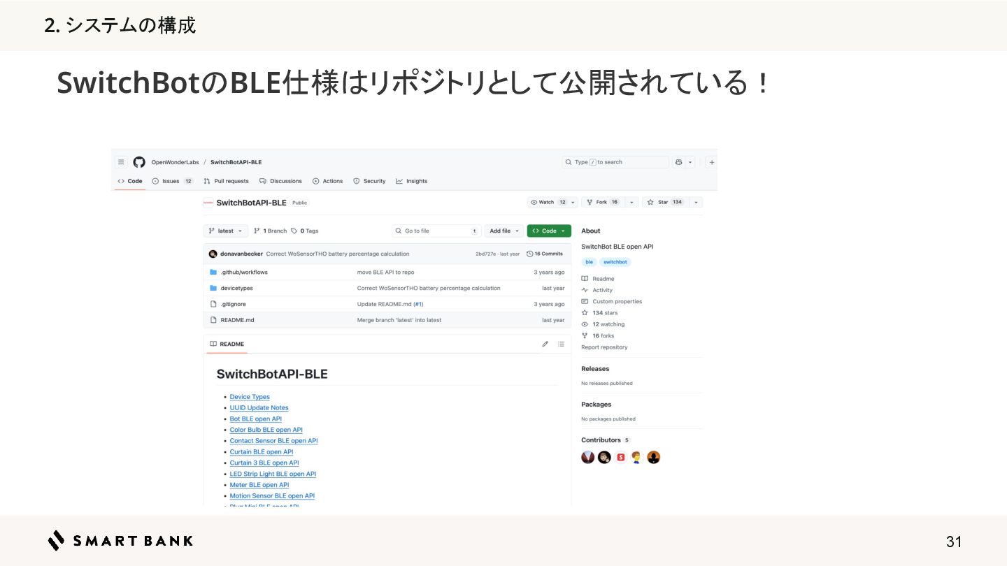 31 2. システムの構成 SwitchBotのBLE仕様はリポジトリとして公開されている!