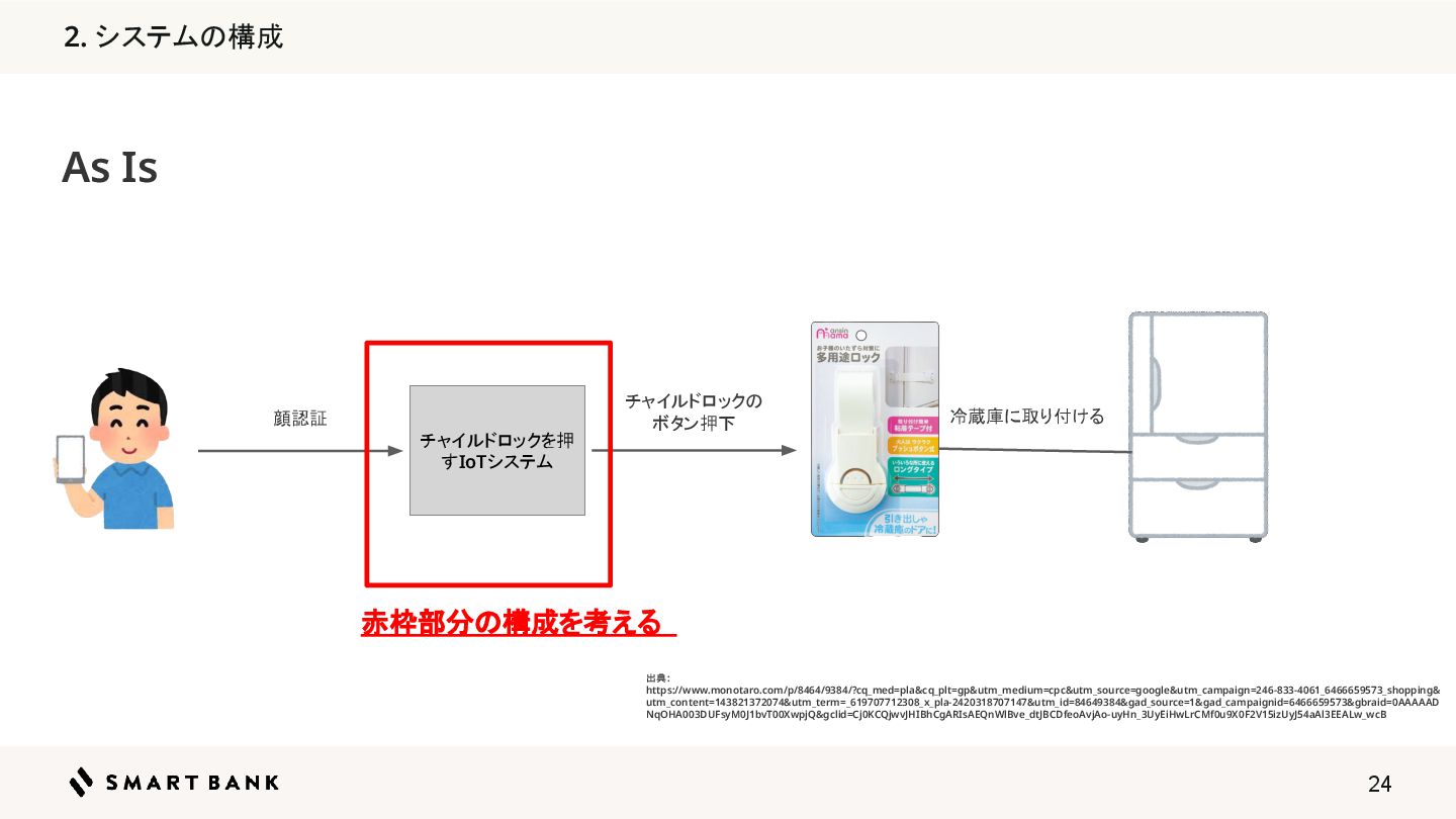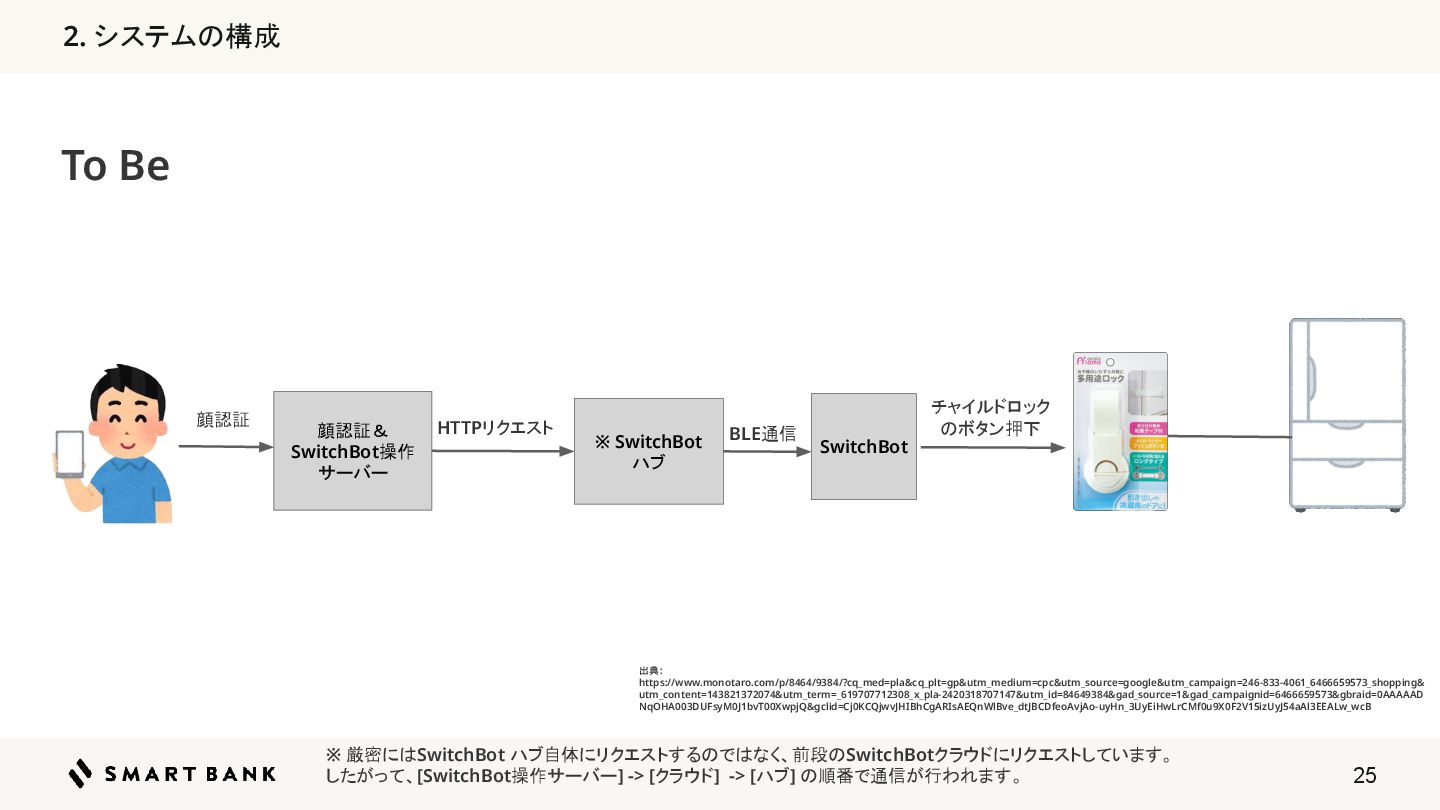 24 2. システムの構成 As Is 顔認証 出典: https://www.monotaro.com/p/8464/9384/?cq_med=pla&cq_plt=gp&utm_medium=cpc&utm_source=google&utm_campaign=246-833-4061_6466659573_shopping& utm_content=143821372074&utm_term=_619707712308_x_pla-2420318707147&utm_id=84649384&gad_source=1&gad_campaignid=6466659573&gbraid=0AAAAAD NqOHA003DUFsyM0J1bvT00XwpjQ&gclid=Cj0KCQjwvJHIBhCgARIsAEQnWlBve_dtJBCDfeoAvjAo-uyHn_3UyEiHwLrCMf0u9X0F2V15izUyJ54aAl3EEALw_wcB