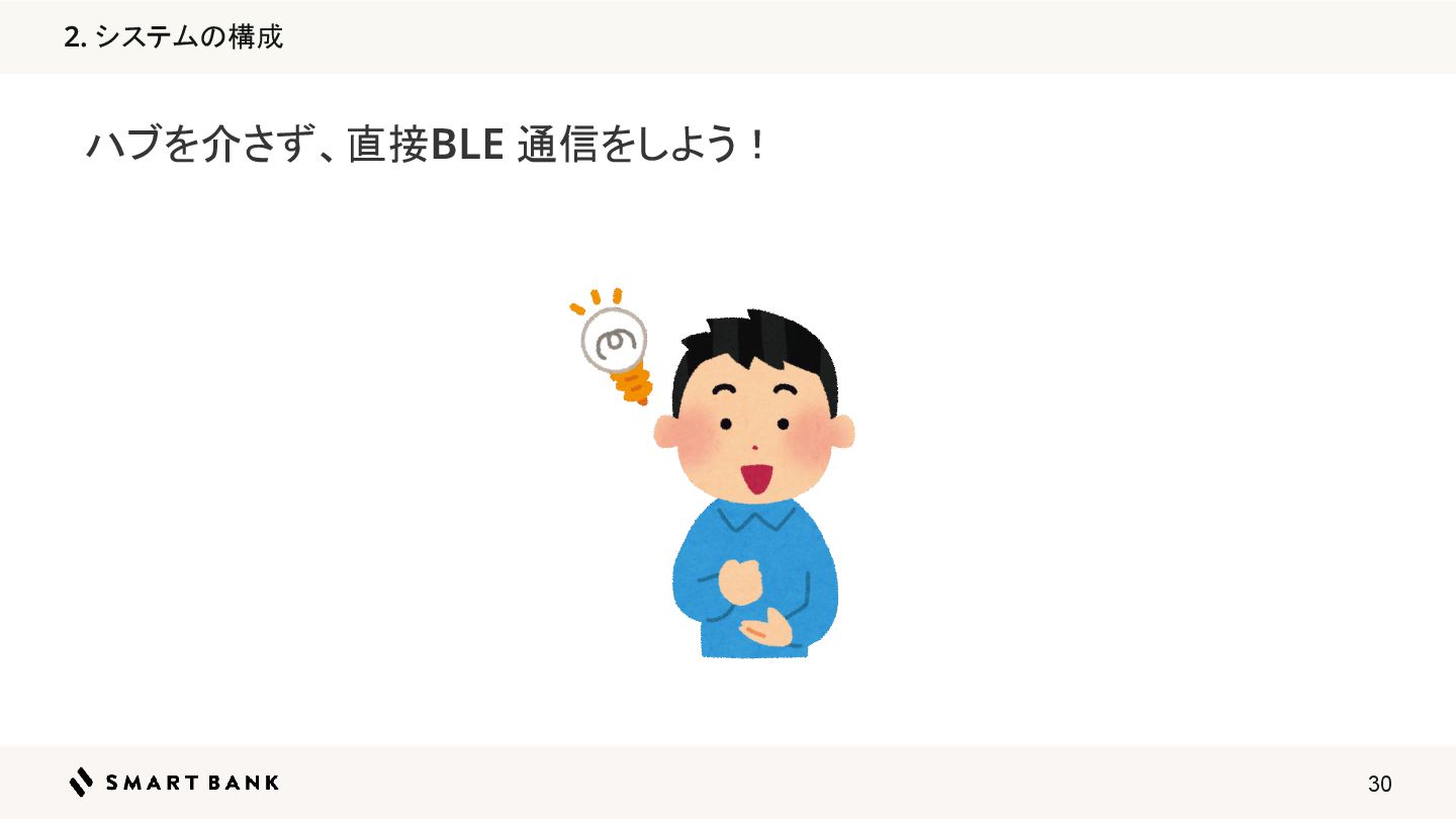 30 2. システムの構成 ハブを介さず、直接BLE 通信をしよう!