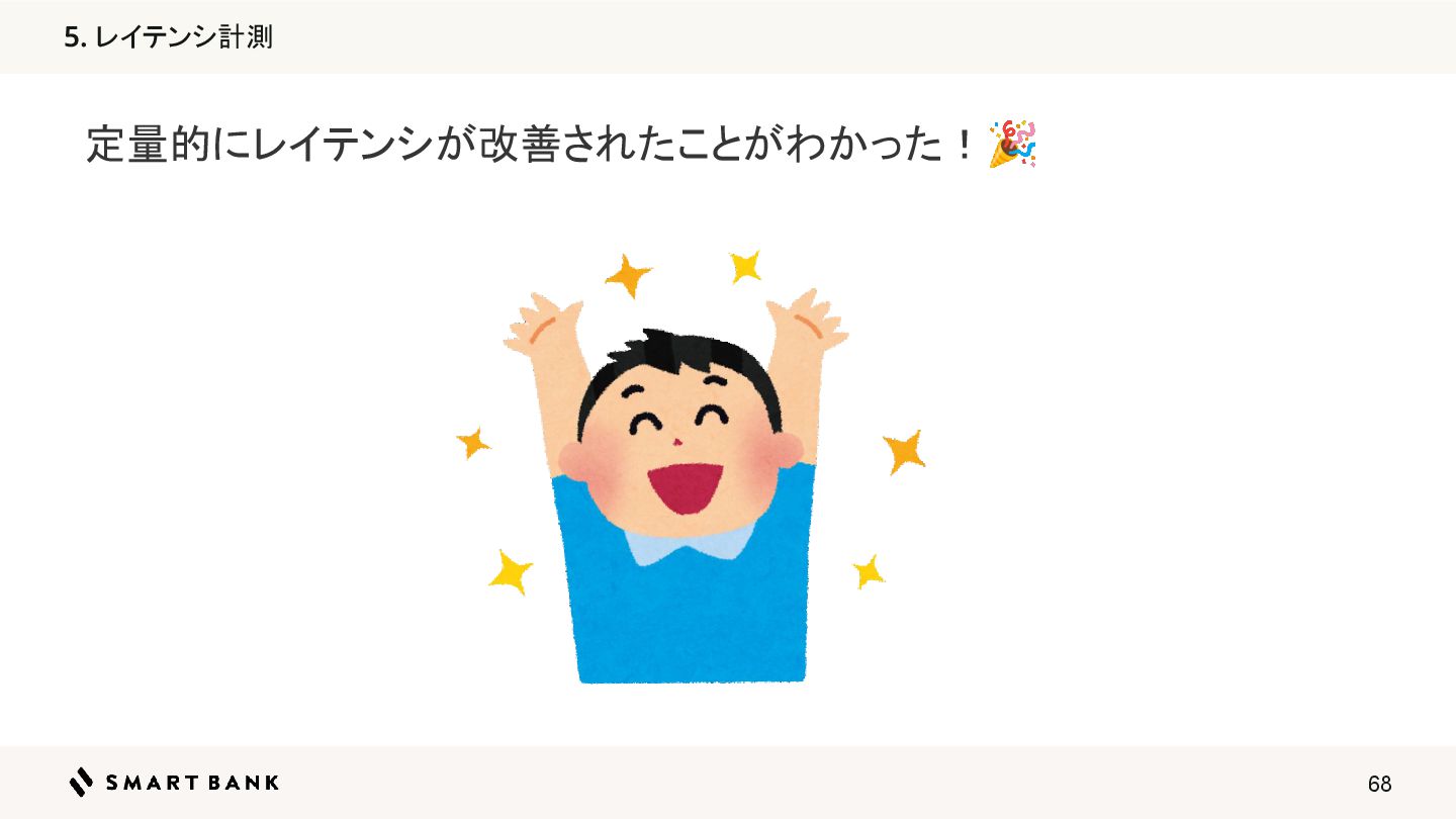 68 5. レイテンシ計測 定量的にレイテンシが改善されたことがわかった!🎉