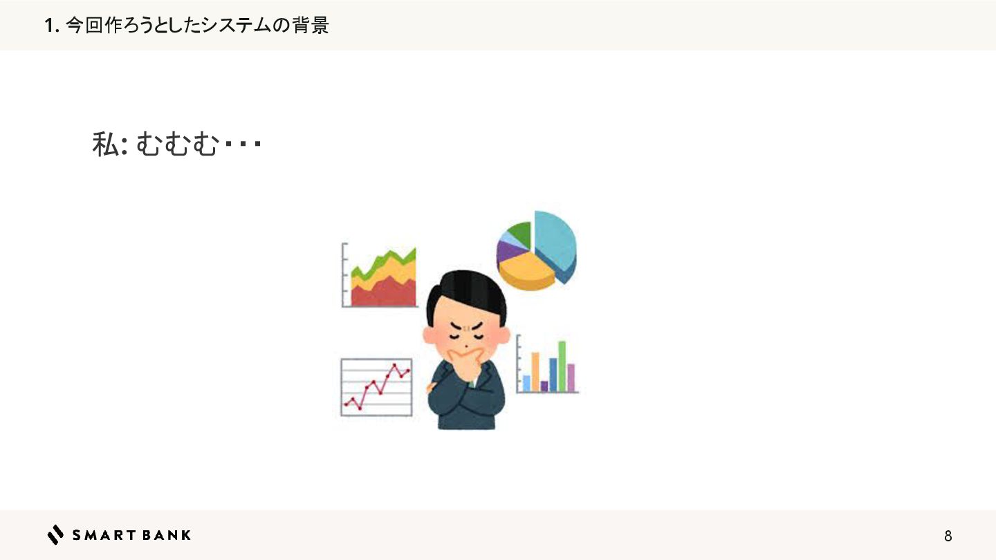 8 1. 今回作ろうとしたシステムの背景 私: むむむ・・・