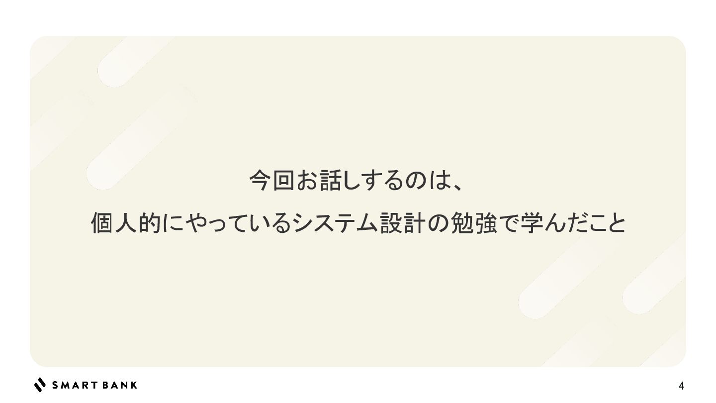 4 今回お話しするのは、 個人的にやっているシステム設計の勉強で学んだこと