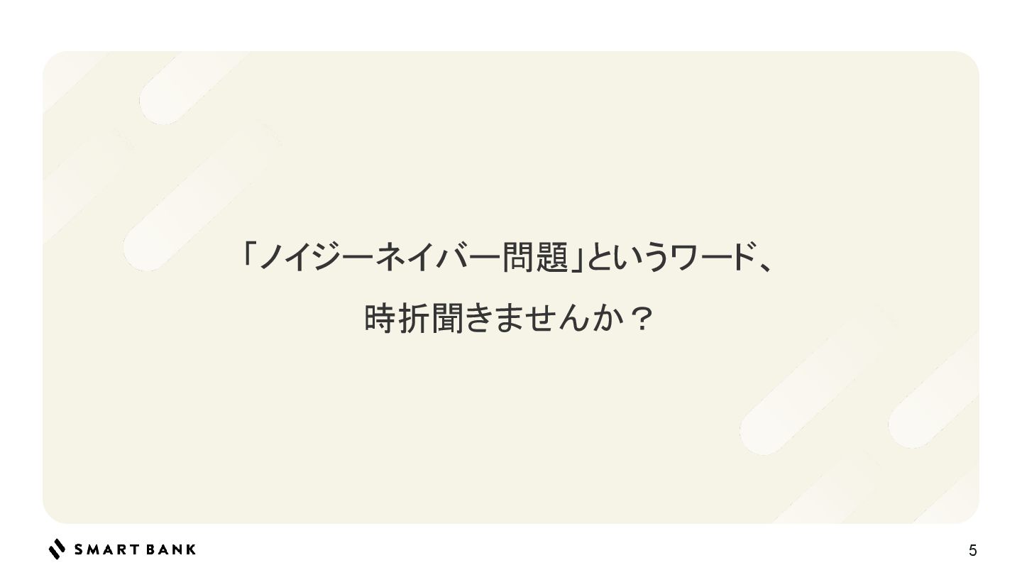 5 「ノイジーネイバー問題」というワード、 時折聞きませんか?