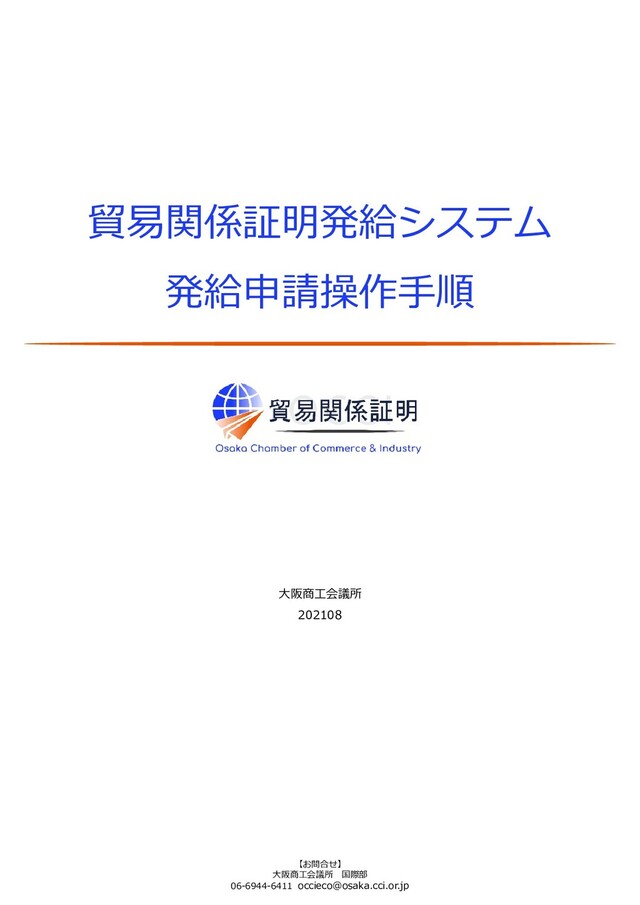 貿易関係証明発給システム 発給申請操作手順 大阪商工会議所 202108 【お問合せ】 大阪商工会議所 国際部 06-6944-6411