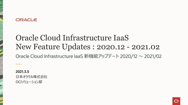 Oracle Cloud Infrastructure IaaS 新機能アップデート 2020/12~2021/2