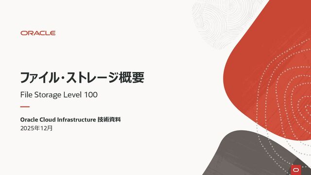 Oracle Cloud Infrastructure (OCI) の技術説明資料、ファイル・ストレージ・サービスの概要編 (Level 100) です。