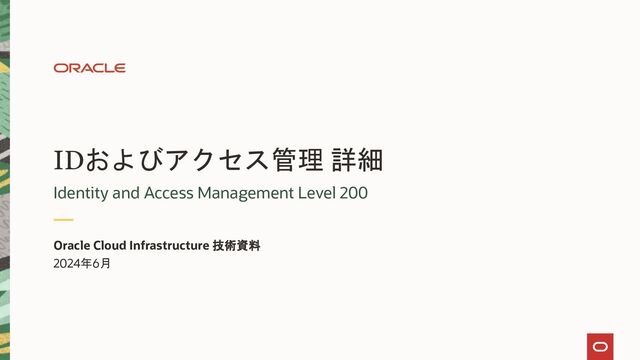 Oracle Cloud Infrastructure (OCI) の技術説明資料、IDおよびアクセス管理 (IAM) の詳細編 (Level 200) です。