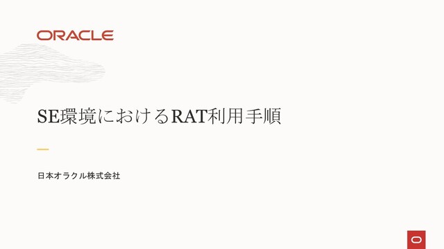 RAT手順 トレースファイル出力1 SQL> conn scott/tiger ##処理を実行するユーザに接続 ##SQLトレースを有効に設定 SQL> ALTER SESSION SET TIMED_STATISTICS=TRUE; #トレースファイルに時刻を出力する設定 SQL> ALTER SESSION SET MAX_DUMP_FILE_SIZE=UNLIMITED; #トレースファイルの最大サイズを指定(ここでは無制限に指定しているため、該当ディレクトリの空き容量に注意してください) #トレースファイルに'SQLTRACE'という名前を付与し分かりやすくする SQL> ALTER SESSION SET TRACEFILE_IDENTIFIER='SQLTRACE'; #レベル4のセッションレベルトレースを有効化(レベル4はLEVEL 1 + バインド変数) SQL> ALTER SESSION SET EVENTS '10046 TRACE NAME CONTEXT FOREVER, LEVEL 4' 変更前環境(本番環境) 17