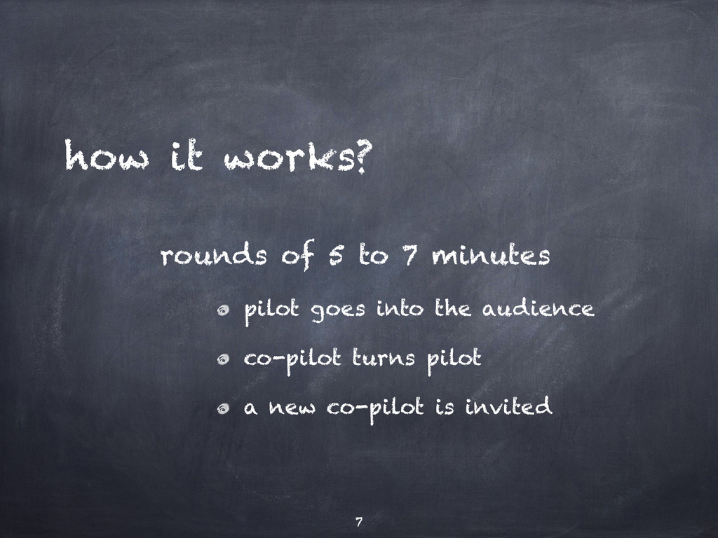 goes into the audience co-pilot turns pilot a new co-pilot is invited 7