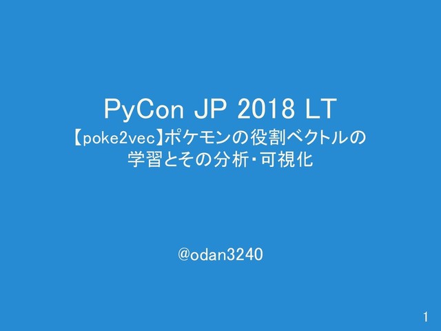 PyCon JP 2018 LT 【poke2vec】ポケモンの役割ベクトルの 学習とその分析・可視化 1 @odan3240
