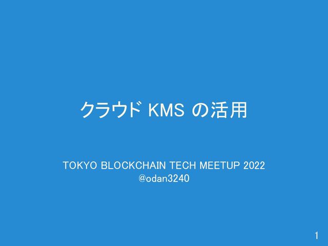 クラウド KMS の活用 1 TOKYO BLOCKCHAIN TECH MEETUP 2022 @odan3240