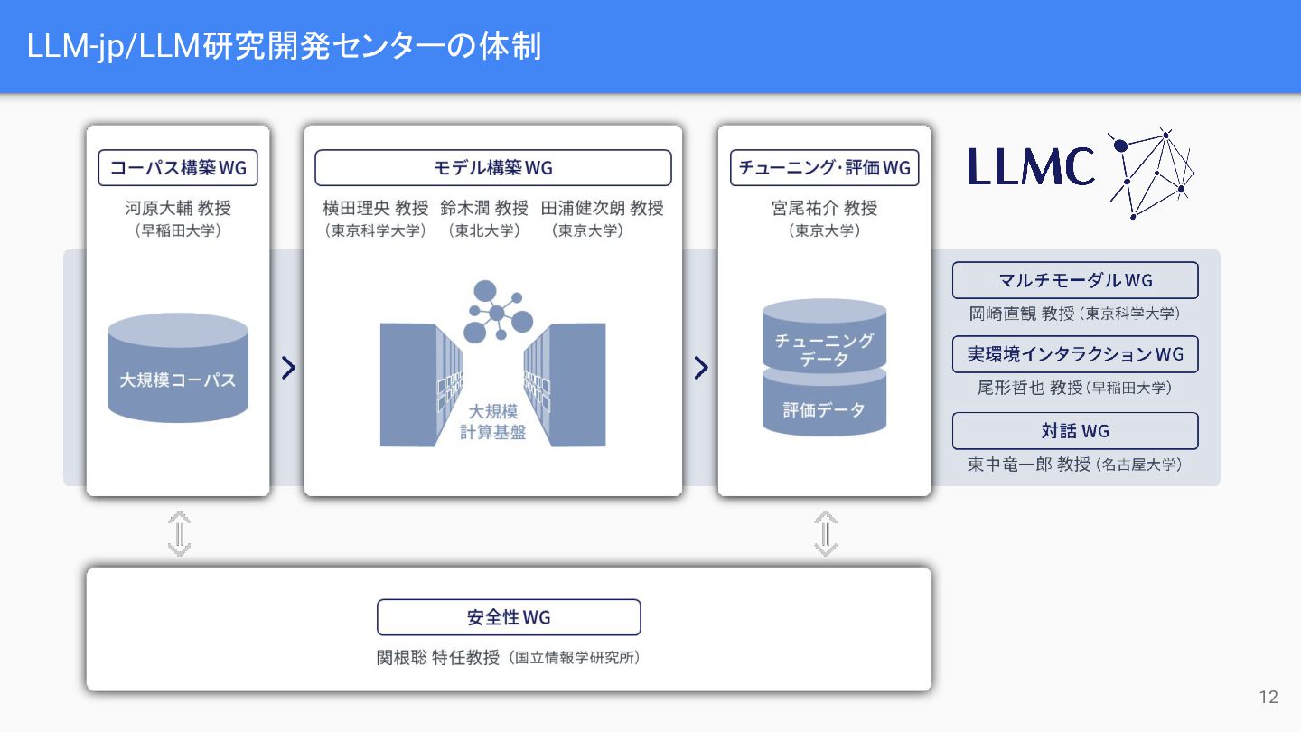 LLM-jp/LLM研究開発センターの体制 12