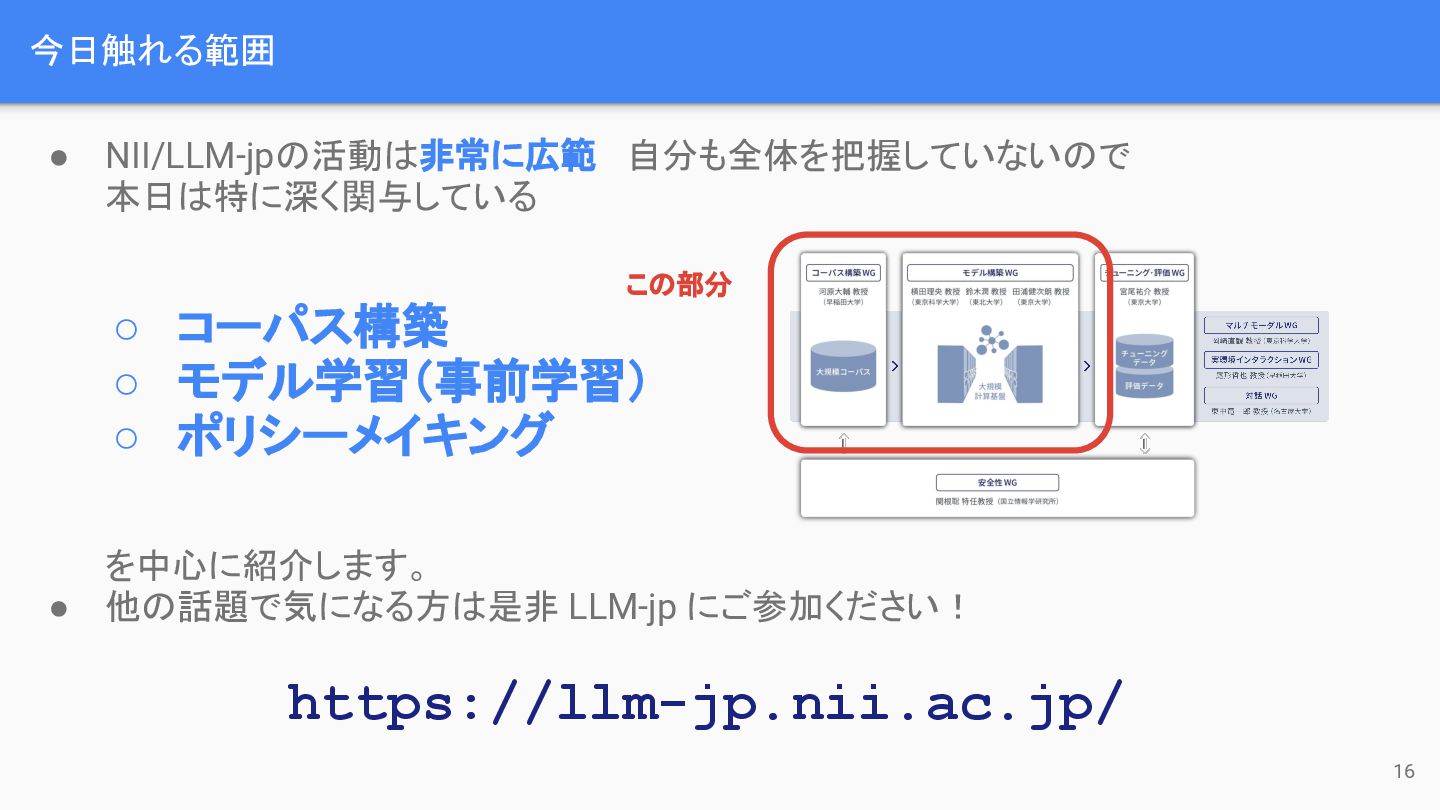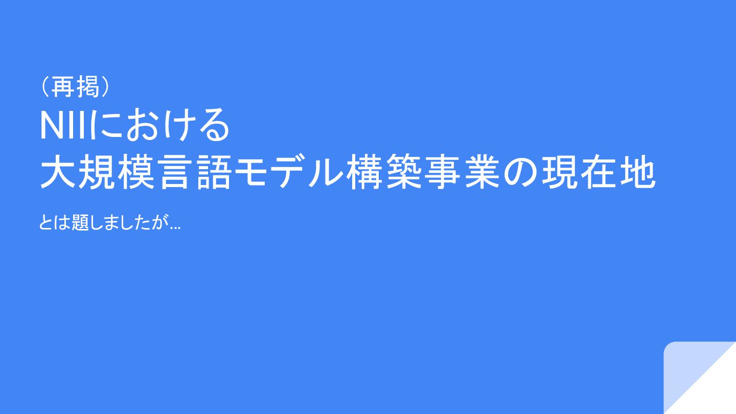 (再掲) NIIにおける 大規模言語モデル構築事業の現在地 とは題しましたが…