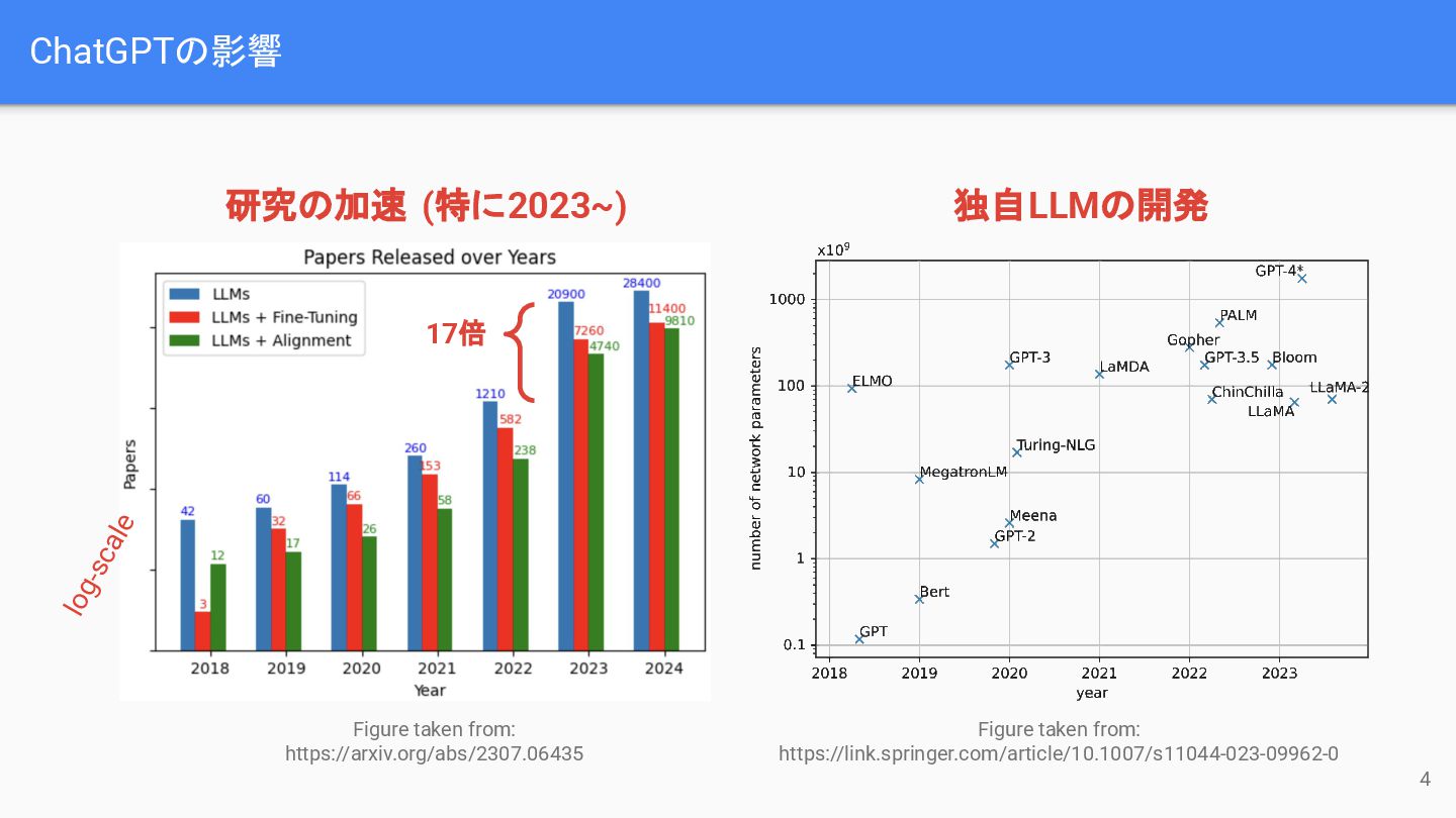 (特に2023~) 独自LLMの開発 log-scale 4 17倍