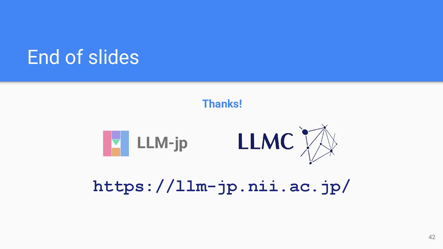End of slides 42 Thanks! https://llm-jp.nii.ac.jp/ LLM-jp
