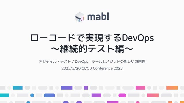 ローコードで実現するDevOps ~継続的テスト編~ アジャイル / テスト / DevOps:ツールとメソッドの新しい方向性 2023/3/20 CI/CD Conference