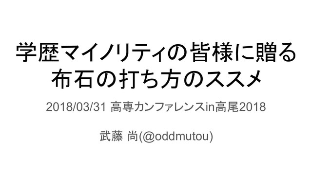 学歴マイノリティの皆様に贈る 布石の打ち方のススメ 2018/03/31 高専カンファレンスin高尾2018 武藤 尚(@oddmutou)