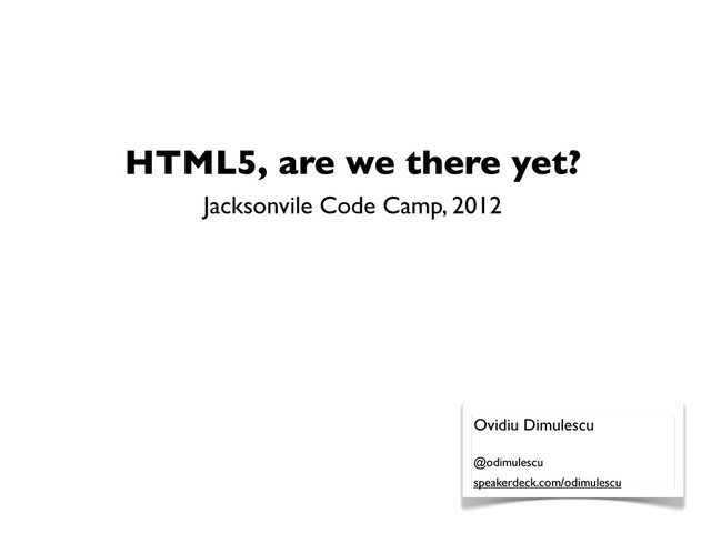 HTML5 has been touted as the next wave in web apps, mobile and even desktop apps now with Windows 8. This talk will cover what HTML5 really is, why should you care and go over practical approaches to using it now in a cross platform and future compatible way.