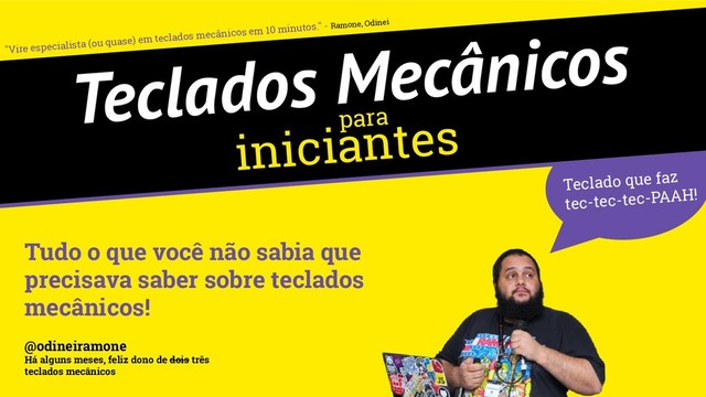 a Mechanical Keyboard at (Mass) Drop - Cassidy Williams (CodePen) - twitter.com/cassidoo - Fala sobre teclados mecânicos e posta vídeos engraçados - Caique Mitsuoka (Plataformatec) - twitter.com/caiquemitsuoka - Fala sobre teclados mecânicos, programação, músicas emo e faz um café deliciante ☕