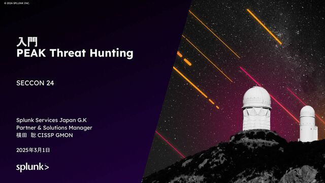 1. © 2024 SPLUNK INC. SECCON 24 入門 PEAK Threat Hunting