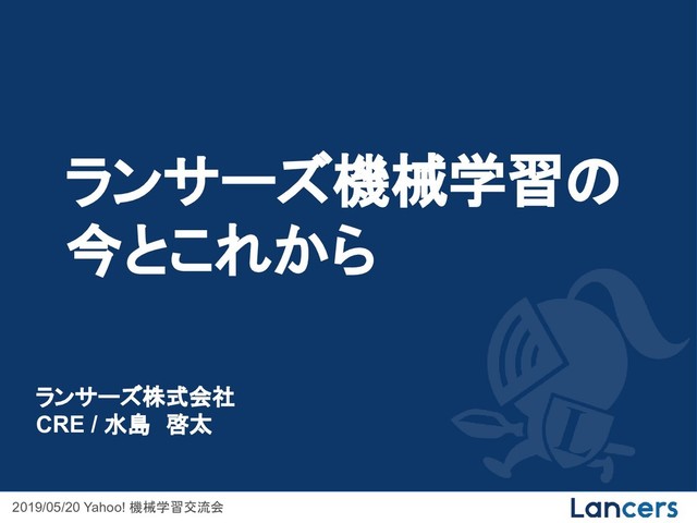 2019/05/20 Yahoo! 機械学習交流会 ランサーズ機械学習の 今とこれから ランサーズ株式会社 CRE / 水島 啓太