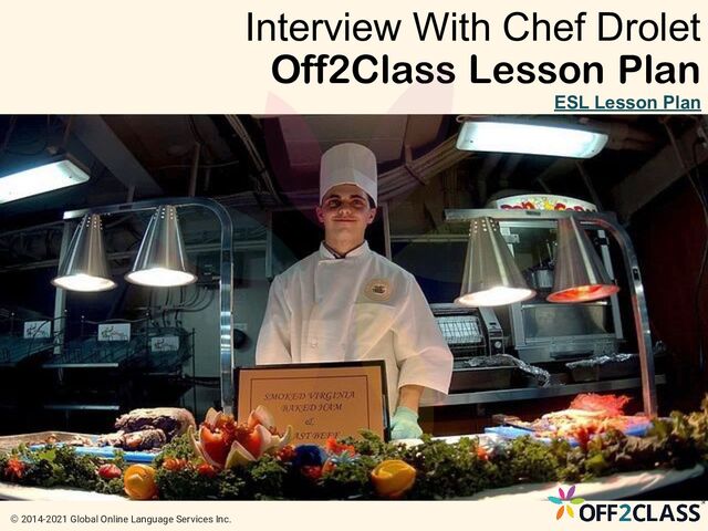 Interview With Chef Drolet – In this lesson, students will learn new vocabulary related to food and talk about the food in their own countries. Students of all ages and levels will appreciate this lesson.