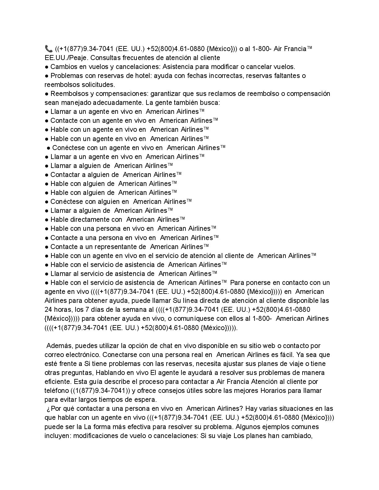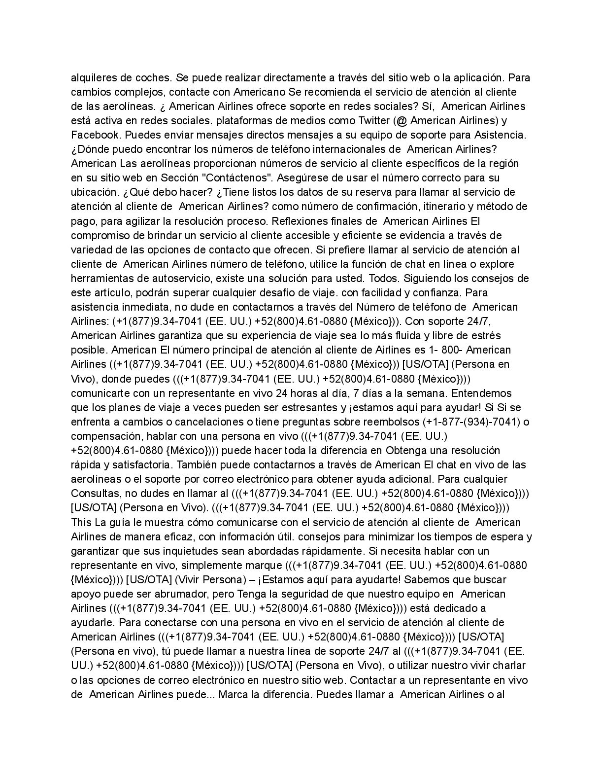 sitio web o la aplicación. Para cambios complejos, contacte con Americano Se recomienda el servicio de atención al cliente de las aerolíneas. ¿ American Airlines ofrece soporte en redes sociales? Sí, American Airlines está activa en redes sociales. plataformas de medios como Twitter (@ American Airlines) y Facebook. Puedes enviar mensajes directos mensajes a su equipo de soporte para Asistencia. ¿Dónde puedo encontrar los números de teléfono internacionales de American Airlines? American Las aerolíneas proporcionan números de servicio al cliente específicos de la región en su sitio web en Sección "Contáctenos". Asegúrese de usar el número correcto para su ubicación. ¿Qué debo hacer? ¿Tiene listos los datos de su reserva para llamar al servicio de atención al cliente de American Airlines? como número de confirmación, itinerario y método de pago, para agilizar la resolución proceso. Reflexiones finales de American Airlines El compromiso de brindar un servicio al cliente accesible y eficiente se evidencia a través de variedad de las opciones de contacto que ofrecen. Si prefiere llamar al servicio de atención al cliente de American Airlines número de teléfono, utilice la función de chat en línea o explore herramientas de autoservicio, existe una solución para usted. Todos. Siguiendo los consejos de este artículo, podrán superar cualquier desafío de viaje. con facilidad y confianza. Para asistencia inmediata, no dude en contactarnos a través del Número de teléfono de American Airlines: (+1(877)9.34-7041 (EE. UU.) +52(800)4.61-0880 {México})). Con soporte 24/7, American Airlines garantiza que su experiencia de viaje sea lo más fluida y libre de estrés posible. American El número principal de atención al cliente de Airlines es 1- 800- American Airlines ((+1(877)9.34-7041 (EE. UU.) +52(800)4.61-0880 {México})) [US/OTA] (Persona en Vivo), donde puedes (((+1(877)9.34-7041 (EE. UU.) +52(800)4.61-0880 {México}))) comunicarte con un representante en vivo 24 horas al día, 7 días a la semana. Entendemos que los planes de viaje a veces pueden ser estresantes y ¡estamos aquí para ayudar! Si Si se enfrenta a cambios o cancelaciones o tiene preguntas sobre reembolsos (+1-877-(934)-7041) o compensación, hablar con una persona en vivo (((+1(877)9.34-7041 (EE. UU.) +52(800)4.61-0880 {México}))) puede hacer toda la diferencia en Obtenga una resolución rápida y satisfactoria. También puede contactarnos a través de American El chat en vivo de las aerolíneas o el soporte por correo electrónico para obtener ayuda adicional. Para cualquier Consultas, no dudes en llamar al (((+1(877)9.34-7041 (EE. UU.) +52(800)4.61-0880 {México}))) [US/OTA] (Persona en Vivo). (((+1(877)9.34-7041 (EE. UU.) +52(800)4.61-0880 {México}))) This La guía le muestra cómo comunicarse con el servicio de atención al cliente de American Airlines de manera eficaz, con información útil. consejos para minimizar los tiempos de espera y garantizar que sus inquietudes sean abordadas rápidamente. Si necesita hablar con un representante en vivo, simplemente marque (((+1(877)9.34-7041 (EE. UU.) +52(800)4.61-0880 {México}))) [US/OTA] (Vivir Persona) – ¡Estamos aquí para ayudarte! Sabemos que buscar apoyo puede ser abrumador, pero Tenga la seguridad de que nuestro equipo en American Airlines (((+1(877)9.34-7041 (EE. UU.) +52(800)4.61-0880 {México}))) está dedicado a ayudarle. Para conectarse con una persona en vivo en el servicio de atención al cliente de American Airlines (((+1(877)9.34-7041 (EE. UU.) +52(800)4.61-0880 {México}))) [US/OTA] (Persona en vivo), tú puede llamar a nuestra línea de soporte 24/7 al (((+1(877)9.34-7041 (EE. UU.) +52(800)4.61-0880 {México}))) [US/OTA] (Persona en Vivo), o utilizar nuestro vivir charlar o las opciones de correo electrónico en nuestro sitio web. Contactar a un representante en vivo de American Airlines puede... Marca la diferencia. Puedes llamar a American Airlines o al
