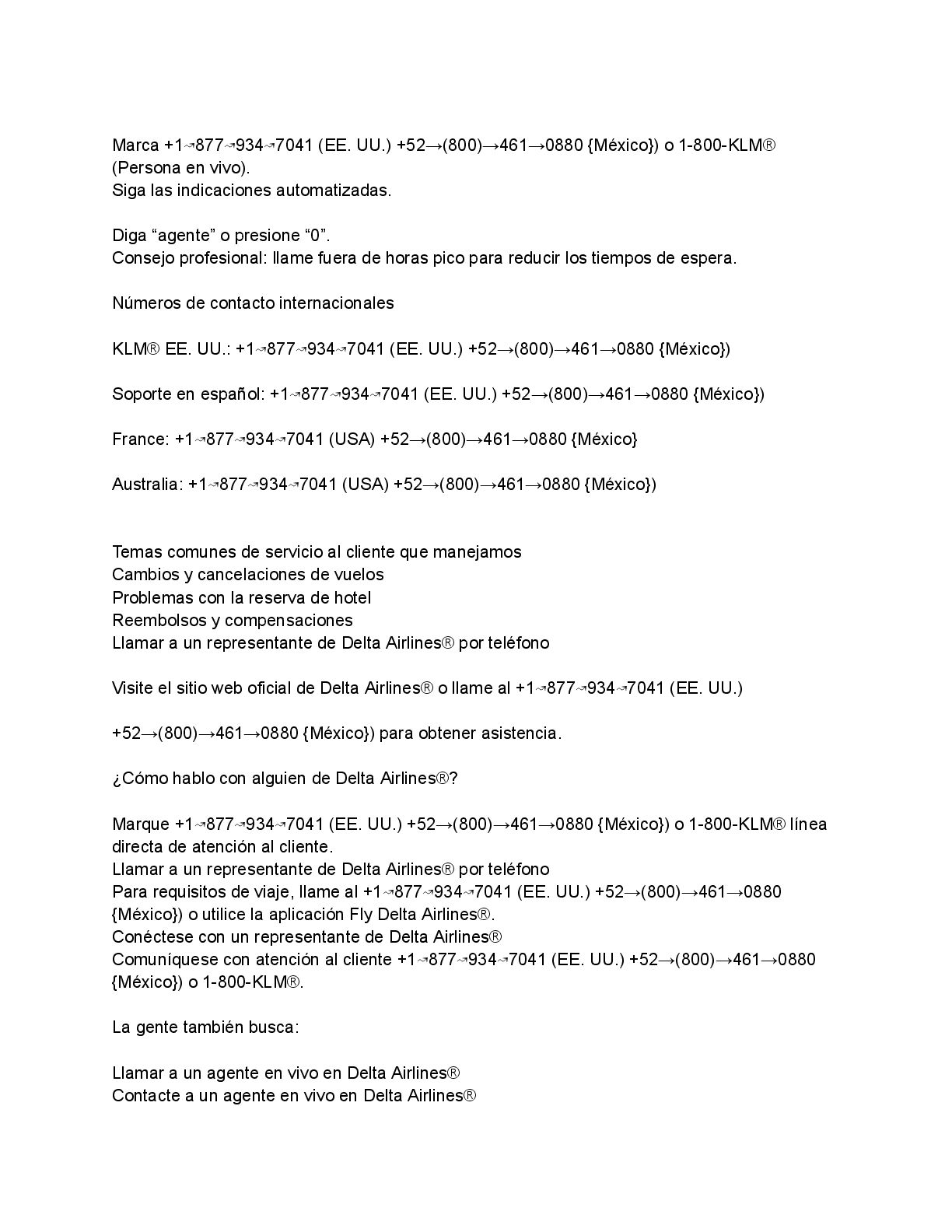 Marca +1↝877↝934↝7041 (EE. UU.) +52→(800)→461→0880 {México}) o 1-800-KLM® (Persona en vivo).