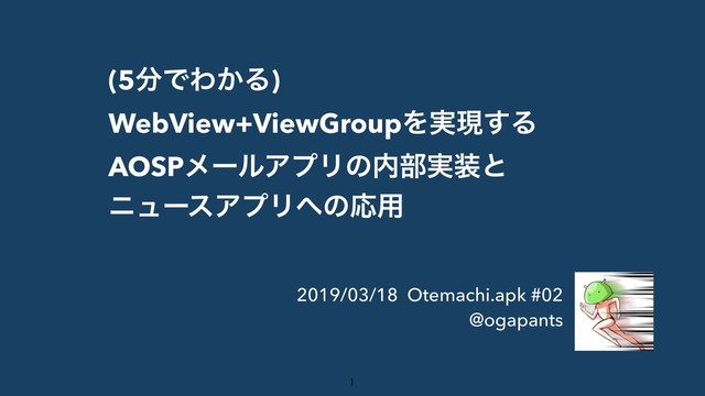 (5ͰΘ͔Δ) WebView+ViewGroupΛ࣮ݱ͢Δ AOSPϝʔϧΞϓϦͷ෦࣮ͱ χϡʔεΞϓϦͷԠ༻ 2019/03/18 Otemachi.apk #02 @ogapants