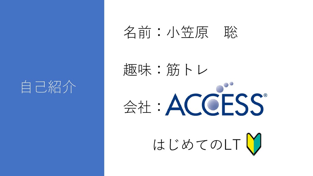 自己紹介 名前:小笠原 聡 趣味:筋トレ 会社: はじめてのLT
