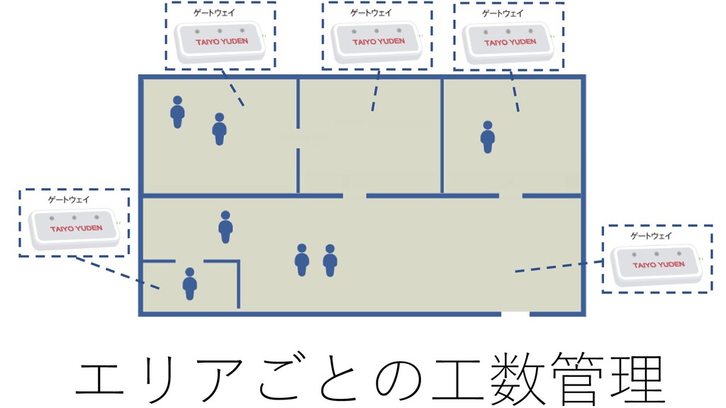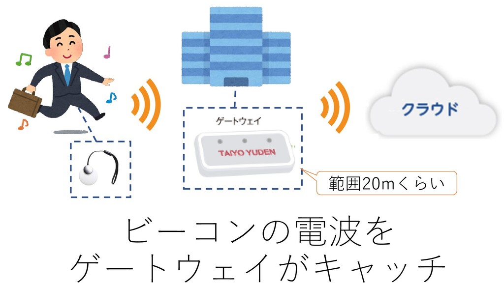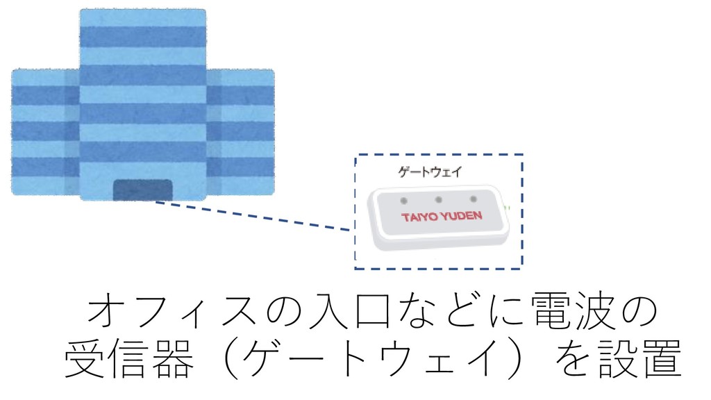 オフィスの入口などに電波の 受信器(ゲートウェイ)を設置