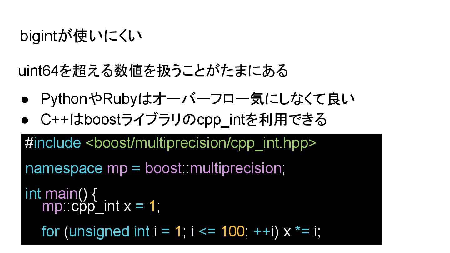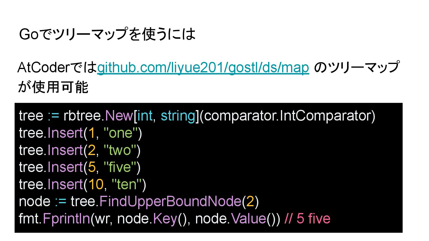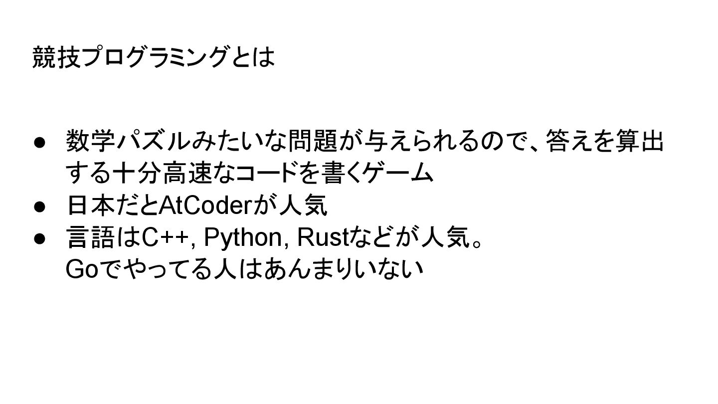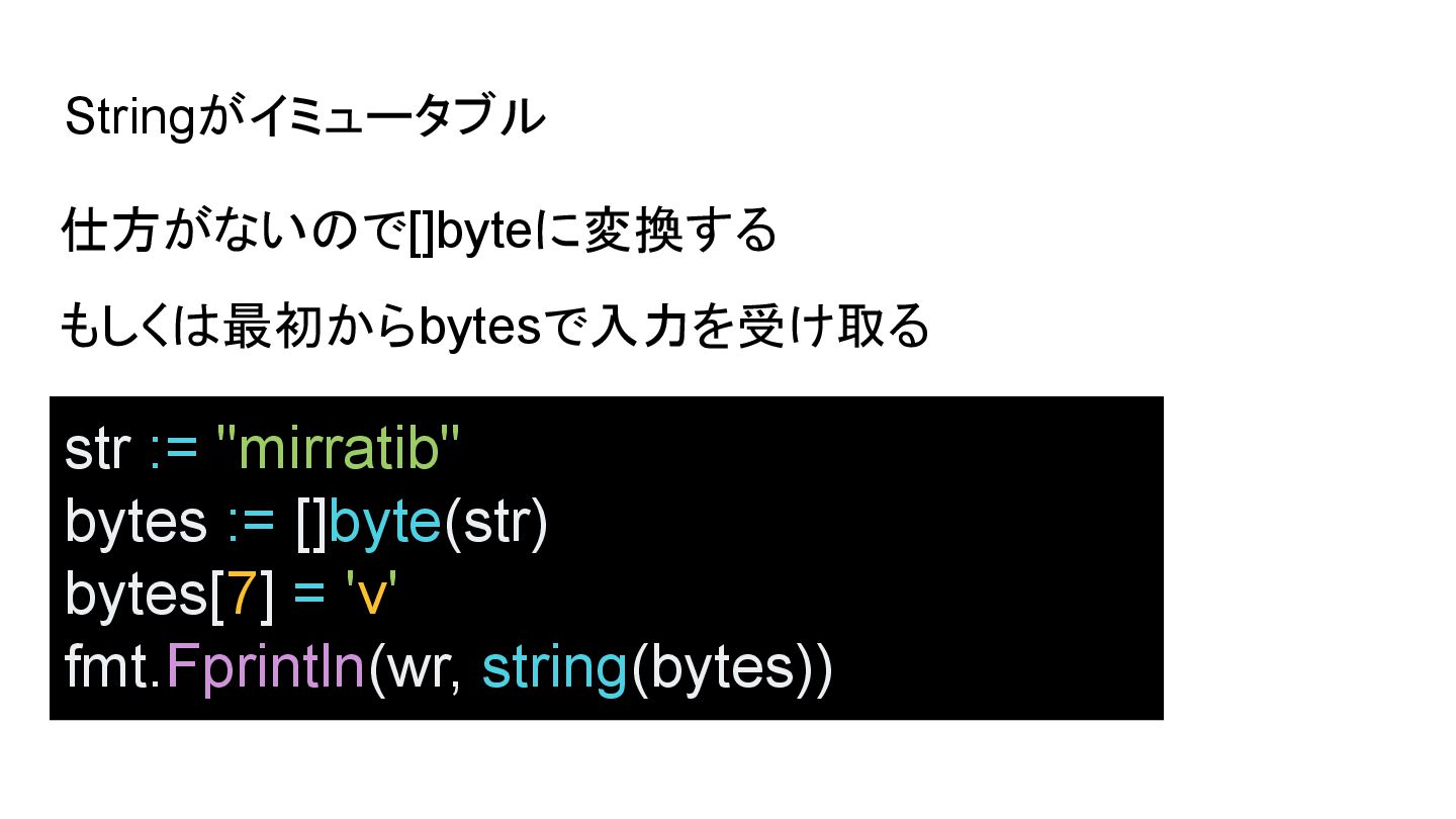 defer wr.Flush() sc.Split(bufio.ScanWords) sc.Buffer([]byte{}, math.MaxInt32) var n int if sc.Scan() { n, _ = strconv.Atoi(sc.Text()) fmt.Fprintf(wr, "Scanned integer: %d\n", n) } bufioを使って、標準入力からのデータを 一度に読み込み、バッファしておくように する