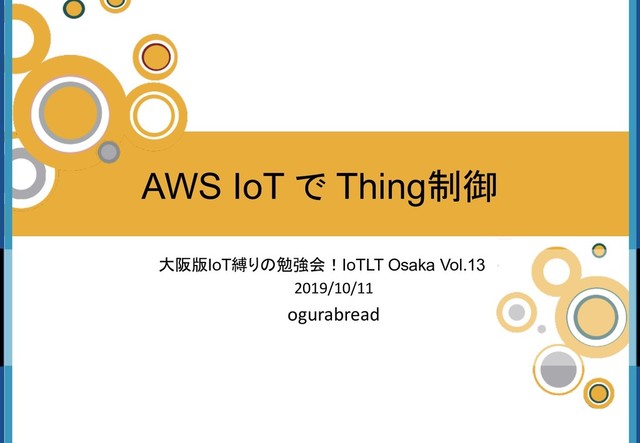 AWS IoT で Thing制御 大阪版IoT縛りの勉強会!IoTLT Osaka Vol.13 2019/10/11 ogurabread